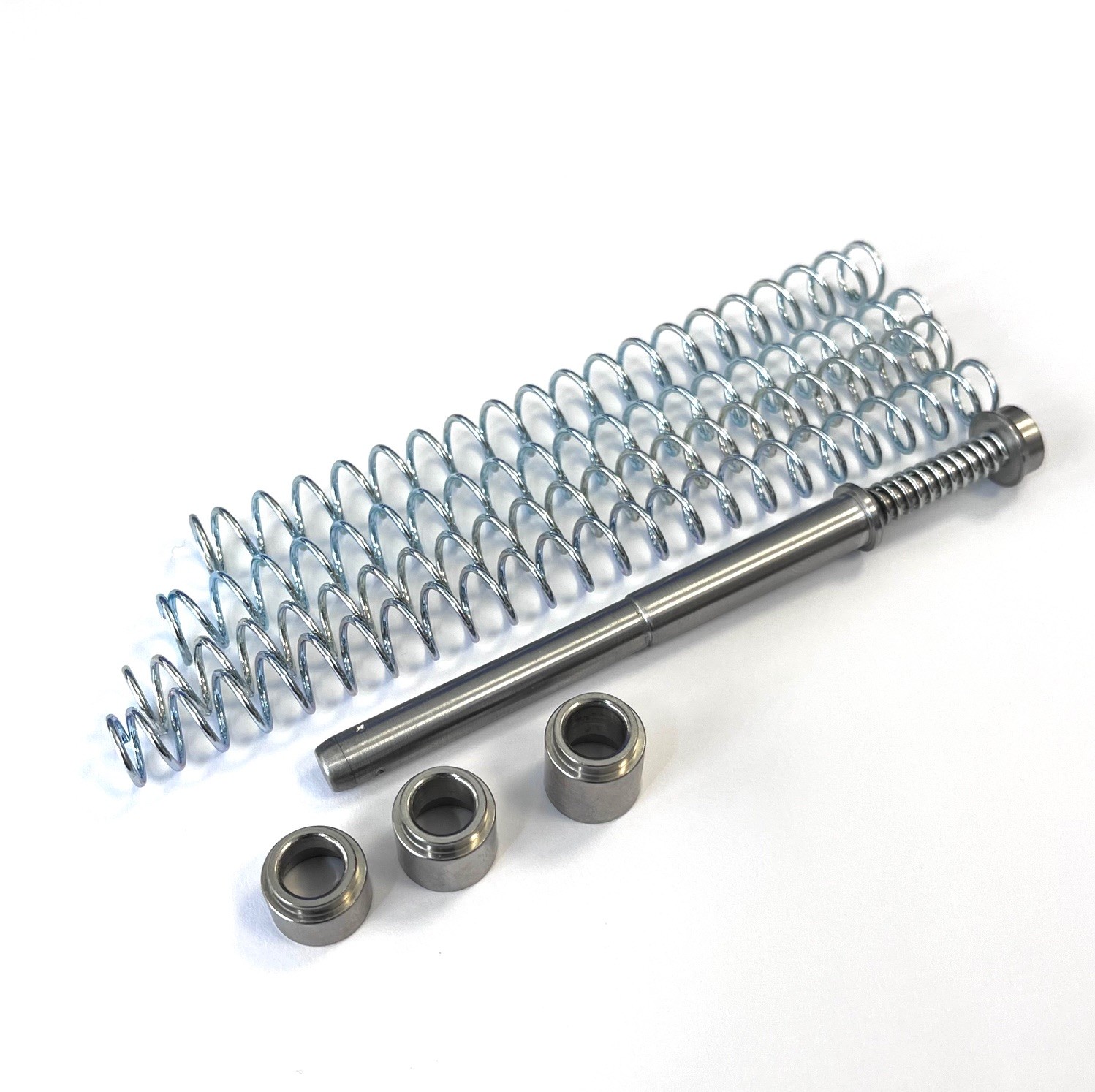 The system includes three different spring plugs and four different external springs.